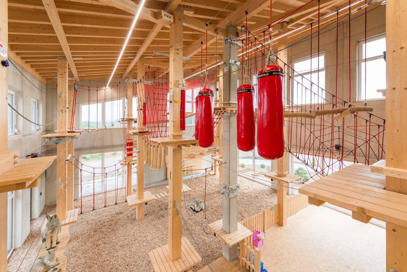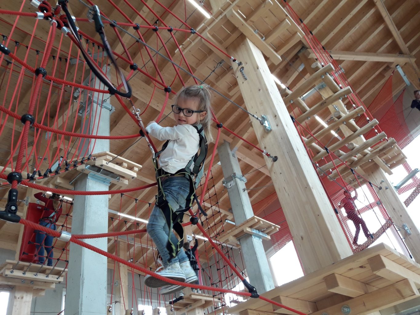 Unser Kletterwald befindet sich in einer hellen, lichtdurchfluteten und beheizten Halle. Er ist aufgeteilt in 4 Parcours mit 32 unterschiedlichen Elementen. Sie Schwierigkeitsgrade von leicht bis schwer machen das Klettern zu einer Herausforderung für alle Besucher. Bereits Kinder ab 3 Jahren können sich im Klettern ausprobieren. Wer bereits Erfahrung mitbringt, kann sein Können im schwierigen Parcours unter Beweis stellen.